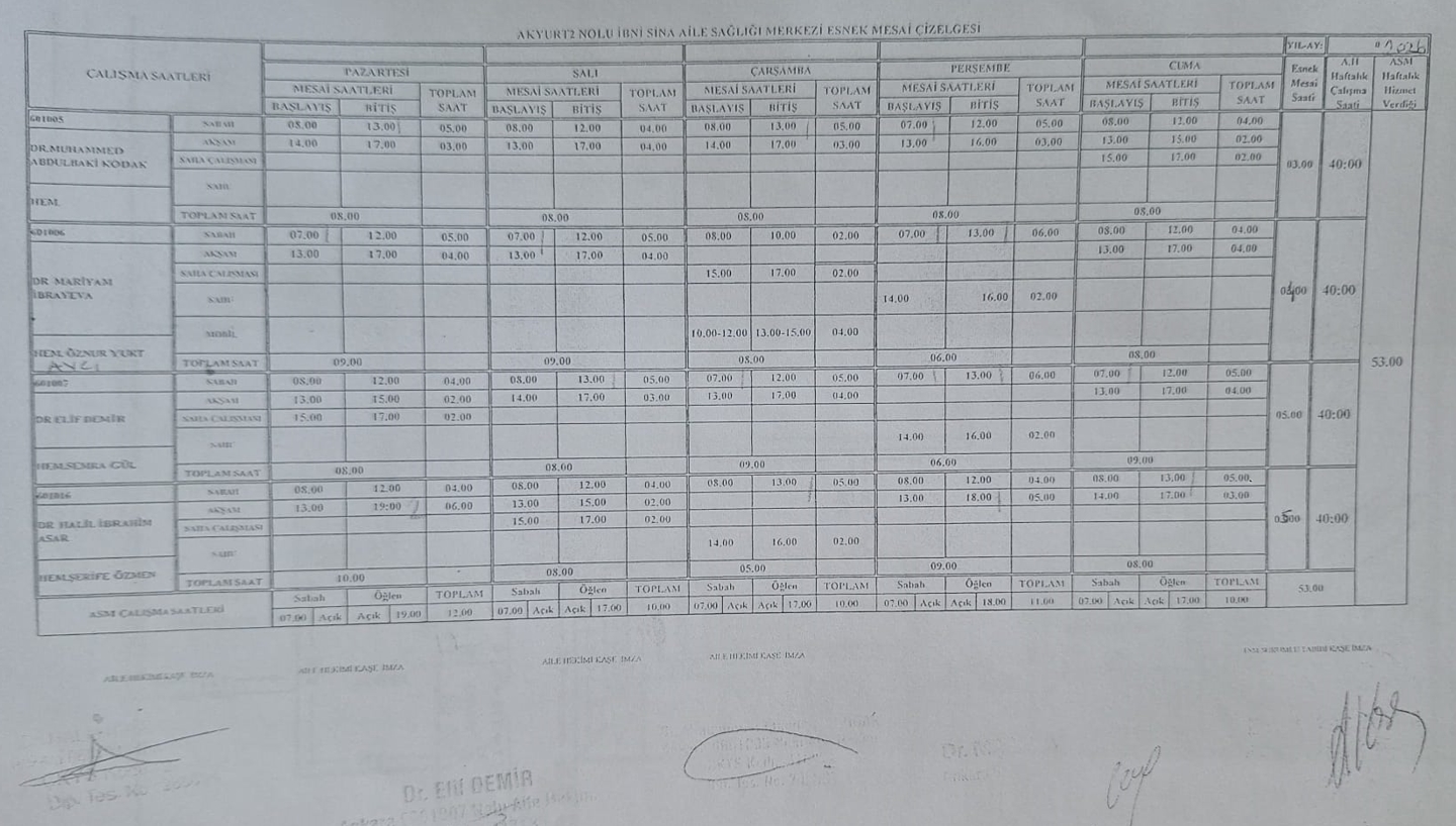 Hekimlerimizin Çalışma Saatleri İçin